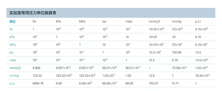 他們Pa, KPa, MPa, mbar, bar, mmH2O, Psi之間的換算方式如下表: